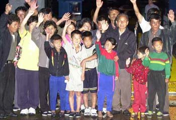 17日从平北宣川郡出发,经西海于19日上午抵达仁川军港码头的荀钟植家属等21名逃北者在举手致意。