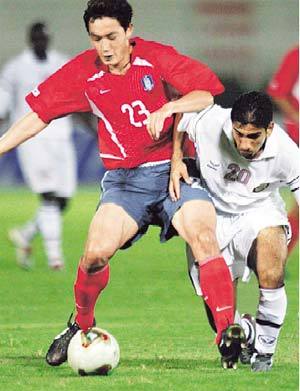自98年获得冠军后,欲再次摘取亚洲青年足球桂冠的韩国队于16日(以下韩国时间)在卡塔尔多哈阿尔拉比体育场进行的第33届亚洲青年足球锦标赛(20岁以下)A组首场比赛中,凭借金东铉(青九高中)一粒金子般的入球以1:0战胜了主队卡塔尔队。