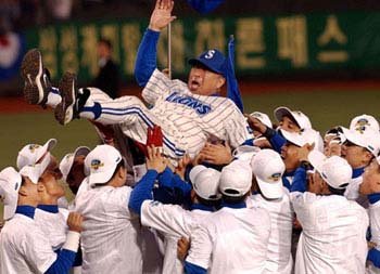 即使是一位“棒球之神”,在20年的主教练生涯中,能够捧走10次冠军奖杯吗?而且还应炫耀一下在韩国循环赛上去掉一次循环赛的达90.9%的冠军确保率,11次连续进行的韩国循环赛总成绩的得胜率达0.712的42胜17负2平。有谁敢于刷新他的光辉成绩。