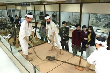 参观汉城江东区城内洞农业博物馆的人们正在观看吐痰的蜡人像。截止到9月份,农业博物馆还在汉城中区、忠贞路,但在当天通过搬迁移到城内洞农协汉城地区总部大楼内,并进行了重新开馆。
