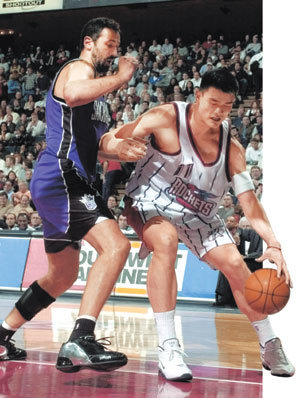 状元秀姚明(22岁,中国,2.26米)正在迅速适应美国篮坛。