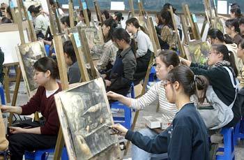 18日上午,在汉城犁花女大举行的造型艺术大学实践考试中,考生们用正在认真地进行美术实践考试。