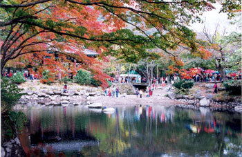 到周末,雪岳山的枫叶将成为最亮丽的风景,南道的枫叶也将染红整座山,这就是晚秋。将一直到11月初仍可欣赏的半岛枫叶将形成最佳景色的地方是满山将被小如婴儿手掌般大小的袖珍枫叶所染红的白岩山白羊寺(全南长城郡)。今年,白羊寺的枫叶庆典将从24日开始举办3天。