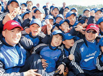 受从今年开始成为正式赞助公司的阿迪达斯公司的邀请,当天两个人与SK队的李永镐、蔡钟范、蔡秉龙、梁贤石等选手一同对100余名小学生进行了棒球指导。