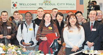 为纪念韩美同盟建立50周年,汉城市举办了首都地区驻韩美军体验韩国家庭生活的活动。18日,在汉城市政府办公楼准备的见面会上,驻韩美军官兵和韩国人相互问候并建立了友谊。当天,320名美军官兵2~3人为一组,来到预先安排好的韩国人家庭,共进晚餐,体验韩国文化,同时加深了相互的理解。