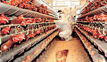 禽流感正在迅速向全国蔓延。20日下午,在忠北阴城郡三成面一农场,防疫人员正在屠宰病鸡。