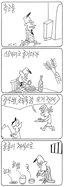 4. 都改吃素食(泡菜、黄豆饭、汤)