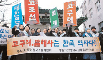 14日,50多名所属韩国小说家协会成员在汉城钟区明洞前中国大使馆举行集会,抗议中国歪曲高句丽史和渤海史。他们还向北韩提议,为了坚守高句丽史,举行南北韩之间的会议。