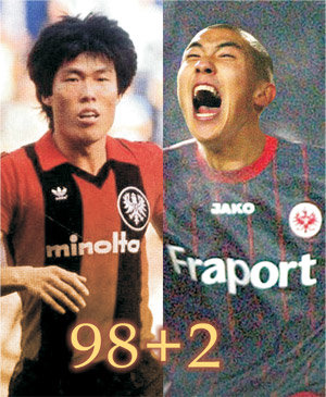 24年5个月零25天后,车范根的儿子车斗里(24岁,德国法兰克福队)同样身披法兰克福队战袍,打入了加盟法兰克福队以来的第一球,而且进球方式与车范根一样,也是头球。