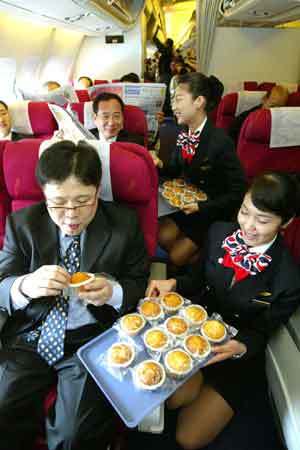 高速铁路开通日——4月1日即将来临之际,各航空公司正在提高飞机内服务水平。大韩航空公司为乘坐汉城∼釜山航班的乘客准备了专用乘机区和服务台,同时向上午9点之前乘机的乘客提供早餐食品。