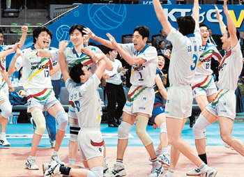 31日,在蚕室学生体育馆进行的KT&G V巡回赛2004排球男子组冠军争夺4次战上,三星火灾队以3比1甩开了现代Capital队的追击。