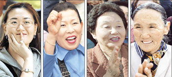 不同年龄段的女性选民正在关注各政党领导层和议会选举候选人的选举游说。虽然她们笑容满面的表情都相同,但内心难以做出支持谁的决定。