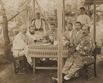 1905年,俄日战争时期被俘的俄罗斯军官正在日军监狱内身穿和服休息。世界最强大的沙皇军官身穿敌军传统服饰的样子别具风格。