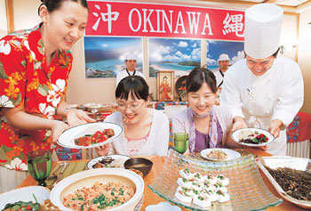 14日,在汉城钟区的太平路plaza酒店举行了由日本冲绳出身的厨师长亲自做的花生豆腐、黑芝麻饼、生鲜紫菜卷等传统冲绳食品的活动。冲绳的传统食品是用猪肉、豆类、海藻等做成的。该活动将持续到28日。
