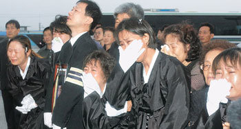 26日,负责运回金鲜一的遗体的空军运输机飞抵金海国际机场,死者家属们忍不住痛哭了出来。当天,金鲜一的遗体被安置在设有灵堂的釜山医疗院。截止到27日,共有4000多名吊唁客前来吊唁。