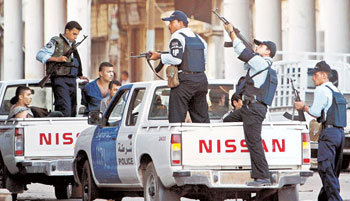 12日,在伊拉克首都巴格达正在镇压抵抗势力的伊拉克警方。伊拉克总统亚瓦尔当天警告说,“为了严惩继续抵抗的武装团体,将重新启用死刑制度。”因此有观测说,其目的可能是为了将前总统萨达姆·侯赛因判处死刑。