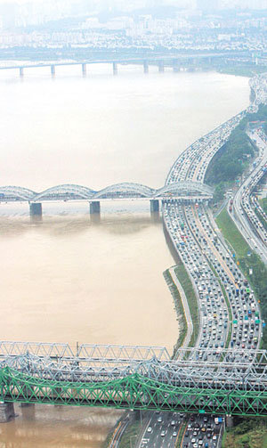 由于持续不断的暴雨和汉江上流的泄洪,15日的汉江变成了土黄色。由于车辆缓慢运行,奥林匹克大道仿佛成了一个庞大的停车场。预计16日全国各地还有降雨,部分地区还将出现雷暴雨。气象厅预计中部地区的雨量将达到20∼60毫米,而且部分地区甚至将达到100毫米以上。