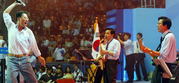 19日,在蚕室学生体育馆举行的大国家党全党大会上,郑斗彦(主唱)、金姬廷(电子琴手)、沈在哲(萨克斯管)、朴亨埈(吉他手)、郑文宪(鼓手)等5名议员组成摇滚乐队,演奏了《年轻的你》,场内气氛立时变得活跃起来。