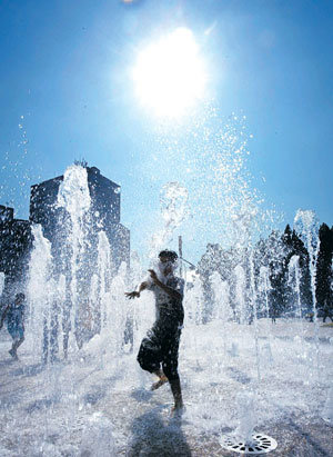 “没有比这更凉快的了。”11日下午,汉城白天气温达到了今年第2高温度35.7度。当天,在汉城市政府前的广场喷水池中,孩子们正在玩水消暑。
