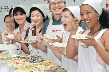 22日,厨房家电企业Cuckoo在汉城某大学以就读该大学的外国学生为对象,举行了“韩国饭品尝活动”。参加者们兴高采烈地品尝着炒饭和杂谷饭。