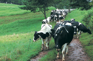 由于放牧管理难,而且奶量也不如圈养,所以,最近放牧牧场并不多见,但据说通过放牧饲养的牛由于所受压力较小,牛奶质量相对较高。