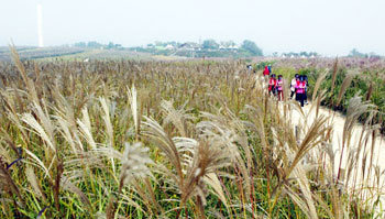 7日,汉城市举办的“第3届蒿子庆典”在汉城麻浦区上岩洞世界杯公园内的蓝天公园开幕。市民们以蓝蓝的天空为背景,沿着蒿子丛中的道路一边散步,一边享受秋天的情趣。庆典将持续到16日。