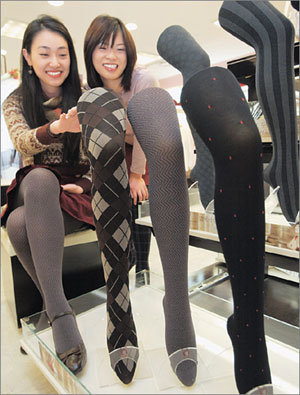 “穿着厚筒袜战胜寒冷。”出现初冬天气的26日,汉城江南区Newcore百货店江南店展示了比普通长筒袜更暖和的厚筒袜。水纹方格等条纹和颜色五花八门。