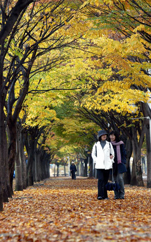 万物欣欣向荣的季节仿佛就是昨天的事情。不知不觉中街道已披上了一层厚厚的落叶。4日,来到仁川南区仁川大公园的市民一边在落叶覆盖的道路上散步,一边陶醉在晚秋的情趣中。