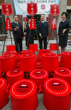 30日上午,救世军大韩本营在从2日开始的年底募捐活动之前在汉城中区贞洞中央会馆前推出了新的救世军慈善募捐锅。使用了40多年的原慈善募捐锅是圆筒形,但是新慈善募捐锅是梯形,还带有手把,是由德国厨房用品企业WHISLER公司制作300多个后无偿捐给了救世军。