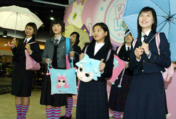 “我们学校的校服怎么样?”校服生产企业精英校服公司2日在首尔江南区三成洞韩国贸易中心举行了校服展,展示了8种女生校服。图为,学生们穿着自己学校的校服,正在摆造型。