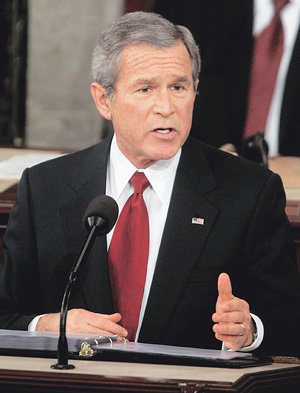 美国总统布什2日通过2期执政首次发表的国情咨文,重申了全世界自由扩散构想。
