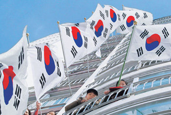 今年是3·1节86周年。28日,首尔城东区玉水洞东仁Shine Ville(音译)公寓的每一层都插上了太极旗。该公寓的居民把从28日开始到本月1日为止定为“我家插国旗日”。