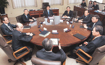 新任副总理兼财政经济部长官韩悳洙(中)于17日上午来到首尔汝矣岛韩国证券期货交易所,并表示:“将为资本市场和实物经济创造良性循环的环节。”并表示将努力推进风险投资企业的培育对策。虽然韩悳洙当天访问了证券交易所,但是综合股指依然还是因国际油价上涨等因素的影响,比前一天下跌13.08点,以980.05点收盘。