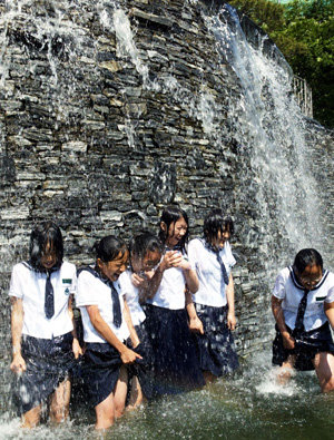 在那一瞬间,学习呀什么的,所有的烦恼忧愁一下子全都飞到了九霄云外。首尔的白天最高气温创下了25度的19日,放学后的女初中生站在首尔松坡区城内川人工瀑布下,迎接飞泻而下的清凉的水柱,享受着快乐。