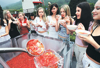 “啊!真凉快。”距离初伏还有两天的13日,京畿果川市首尔乐园“世界的广场”上举行了“三伏酷暑冰冻”(音译)活动。活动中,外国公演团舞蹈演员正在品尝被装在冰桶中的五味子甜茶。