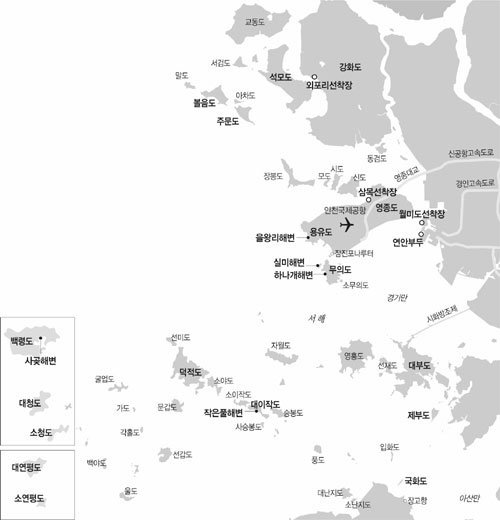 ▽中区=仁川国际机场所在地——永宗岛和龙游岛分别有乙旺里海水浴场和王山海水浴场。要前往这一地区,可以利用机场高速公路或从月尾岛搭乘游船。曾拍摄影片《实尾岛》的实尾岛和电视连续剧《天国的阶梯》的外景地舞衣岛分别有实尾海水浴场哈拿盖海水浴场(音)。