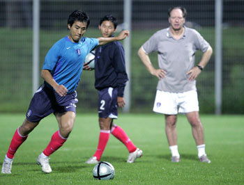 在14日举行的南北统一足球赛中,主教练邦弗雷雷将李东国和李天秀排除在了首发阵容之外。此次比赛中金镇勇被安排在了前锋位置,朴周永和郑京浩分别被安排在左右两侧,结果大获成功。邦弗雷雷表示,将在17日与沙特队进行世界杯小组赛最后一场比赛中“继续进行试验”。