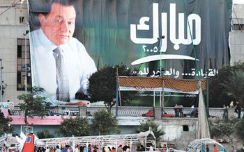 埃及总统选举7日正式开始。这是有10名候选人参加的第一次竞选。尼罗河河边挂着穆巴拉克总统的大型选举海报,上面写着“2005年的穆巴拉克,领导力和奔向未来的交叉口。”