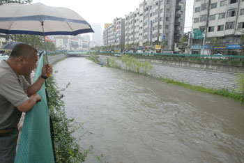 13日下午,首尔地区突然下起了暴雨。首尔清溪第7街周围的清溪川散步道被水淹没。当天,京畿骊州、扬平和江原原州也下起了雨,降水量为50~100毫米。气象厅发布了暴雨注意警报。