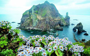 “菊花啊,你是经过三月春风,独自盛开在落木寒天里的……”位于国土末端的独岛也迎来了秋天。挺过呼啸的风雨而盛开,像桂冠一样围绕独岛的东岛盛开的海菊引发了观赏者的赞叹。后面看到的岛是独岛的西岛