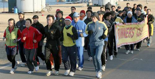 在那先锋中,有网上、网下国内最大的马拉松联谊会“runners俱乐部”(cafe.daum.net/runners)。今年就任的会长南荣标(音译,47岁)表示:“此前,如果是为了自己而跑,那么现在是到了制造为了别人而跑的文化的时候了。正在准备在享受马拉松的同时,又能做善事的一石二鸟的活动。”
