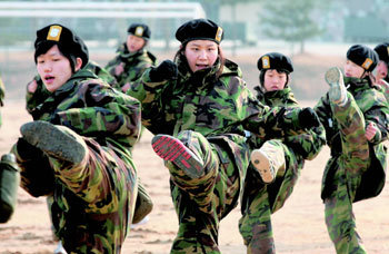 18日,在首尔松坡区巨馀洞的陆军特战司令部飞虎队营区,参加冬季松坡集训的青少年正在学习特工武术。集训从17日进行到20日,从初中1年级学生到55岁的成年人,共有208人参加。