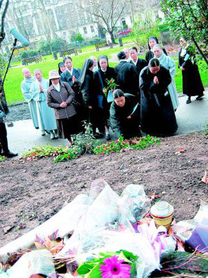 第二天,15日上午,三笑会一行人来到去年7月7日发生汽车炸弹爆炸事故的现场旁边的塔菲斯托斯(音)广场花园,每人献上一束玫瑰,悼念了遇难者。