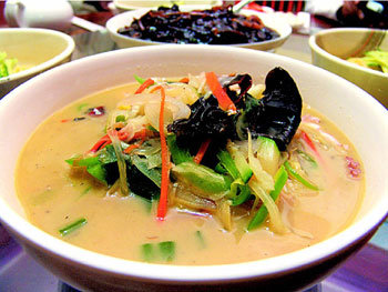 受日本的影响,菜汤面也转变为什锦面。据悉,因为什锦面不合韩国人的口味,所以才有了乌冬面。乌冬面相当于把生菜放进去煮的韩国式菜汤面。