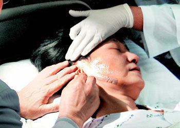 26日,因在支援游说途中遭到袭击而在首尔新村希伯兰氏医院住院一周的大国家党代表朴槿惠的病床照首次被公开。朴槿惠穿着病人服躺在床上,闭着眼睛接受主治医生等2名医生的治疗。从耳边到嘴角的伤口处缠着肉色绷带。