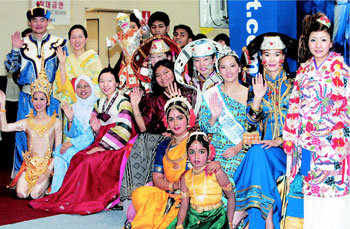 8일 서울 강남구 코엑스에서 개막된 한국국제관광전에서 아시아 각국의 전통 복장을 한 도우미들이 나란히 포즈를 취하고 있다. 전국의 지방자치단체와 해외 60여 개국이 참가한 이 행사에서는 각국의 민속 공연과 관광 정보에 대해 안내한다. 행사는 11일까지.