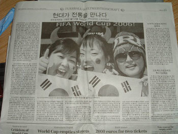 当地的权威报纸《莱比锡人民报》作为周末版,干脆制作了1个韩国语版面。在头版刊登了太极旗和韩国语的“欢迎”。