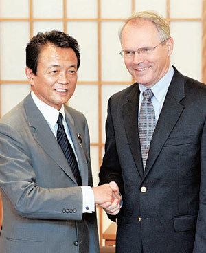 在北韩发射导弹后巡访六方会谈与会国的美国国务院负责东亚太事务的助理国务卿希尔10日访问第三站日本,会见日本外相麻生太郎,讨论了相关对策。希尔的下一站是俄罗斯。