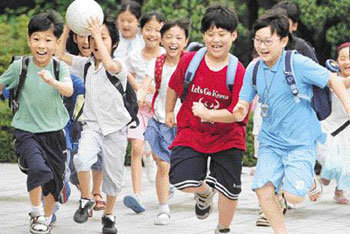 14日,首尔钟路区云岘小学的小朋友们在放学之后,正开心地向家里跑去。全国的部分小学从当天开始进入了为期40天左右的暑假。