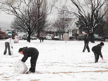 北半球正在炎热天气中挣扎时,位于南半球的南非共和国遭遇了寒流。6日,在南非共和国的克拉伦斯(音译),孩子们正在滚雪球,享受快乐。